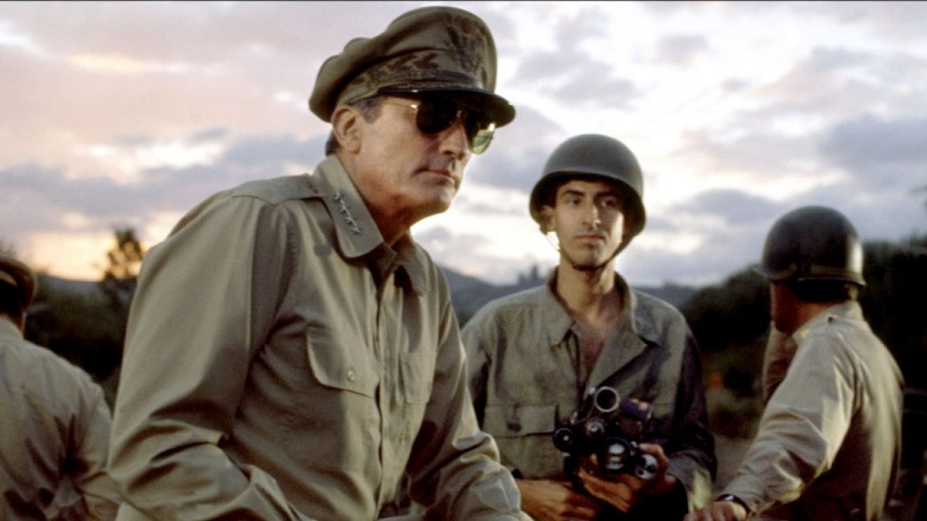 It doesn’t sound like anyone involved was particularly happy with MacArthur. The studio used too much studio footage instead of shooting on site, and that gives it a very televisual feel. It’s only Peck that’s really worth watching. Every other actor turned the part down, from John Wayne to George C. Scott, Cary Grant and Marlon Brando. It has a fairly good Jerry Goldsmith score—Goldsmith also did the score for Patton.