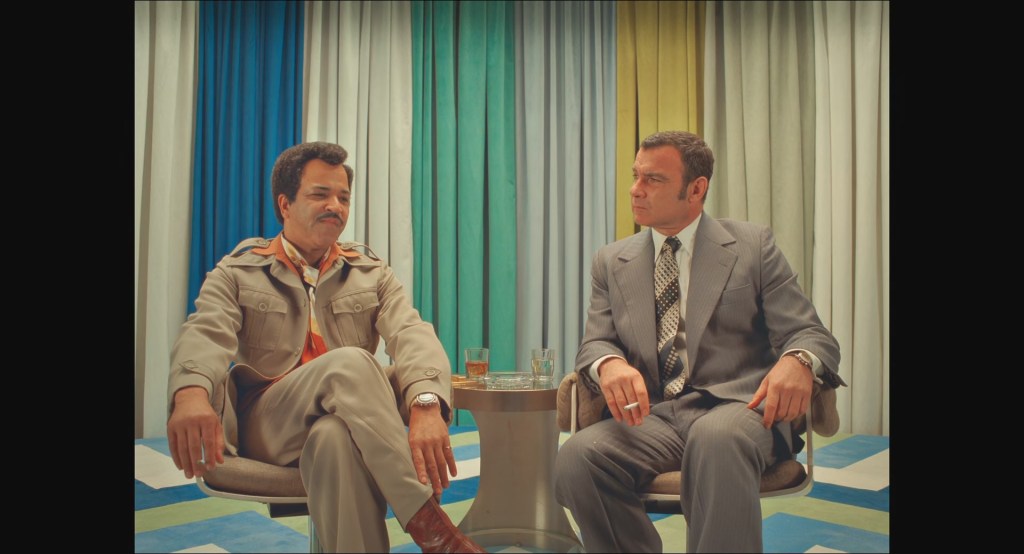 In the third segment, “The Private Dining Room of the Police Commissioner,” Jeffrey Wright plays Roebuck Wright, a character very obviously modelled on James Baldwin with a bit of A.J. Liebling thrown in. This story has its own wraparound, with Roebuck recounting the story on a ‘70s talk show (clearly it’s The Dick Cavett Show) with Liev Schreiber as the host. On my initial viewing, it seemed like a silly caper story. It is exactly that on a surface level. However, on subsequent viewings it seems more poignant, and the whole connection between Wright and Lt. Nescaffier (Steve Park) at the end, which Murray’s editor insists Wright puts back because it’s “heart of the piece,” has a poignancy that I missed on my first viewing, perhaps because I saw it back to back with Titane. Anderson regulars Willem Dafoe and Edward Norton also have really fun bit parts here.